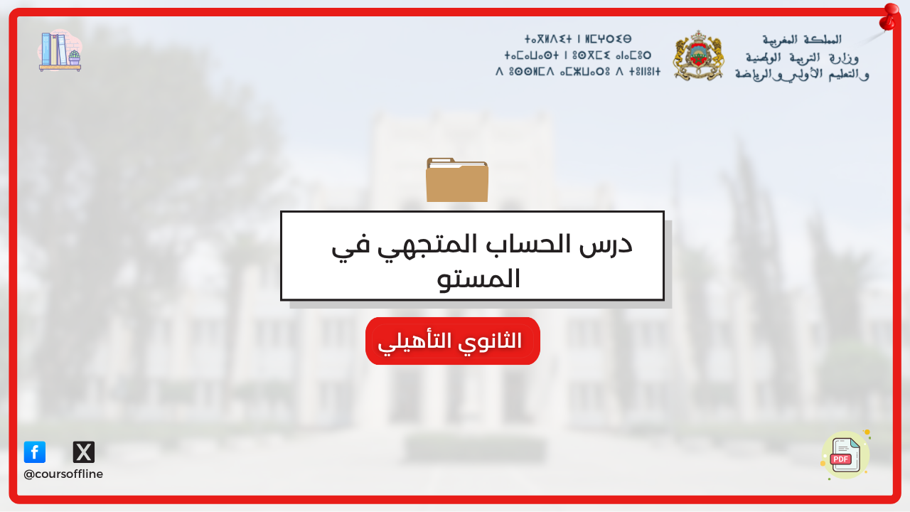 في هذا الشرح سنتناول موضوعًا في غاية الأهمية، وهو ”درس الحساب المتجهي في المستوى جذع مشترك علمي وتكنولوجي”، حيث سنتعرف على المفاهيم الأساسية، ونوضح النقاط المعقدة خطوة بخطوة، مع أمثلة تطبيقية لتسهيل الفهم. هذا الدرس موجه للجميع، سواء كنت مبتدئًا أو لديك خلفية مسبقة وتبحث عن تعزيز معلوماتك.